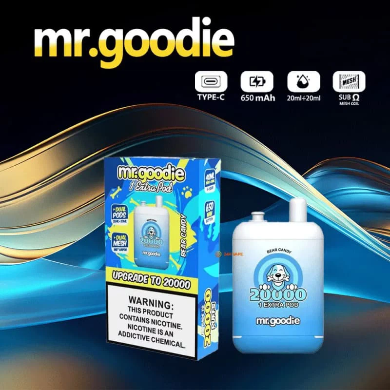 Mr. Goodie 20000 퍼프 일회용 Vape: 20,000 퍼프, 듀얼-포드 시스템 및 신뢰할 수 있는 신뢰성